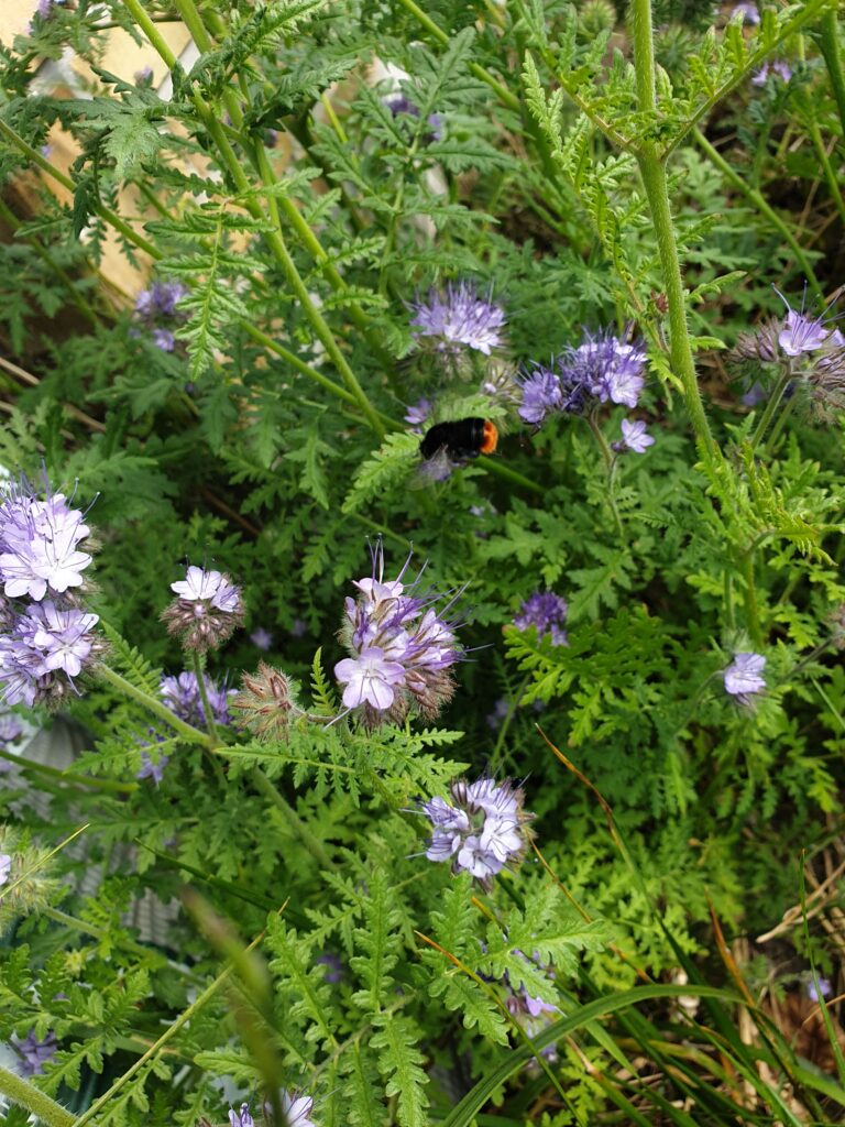 Stenhumlebi hygger sig i haven