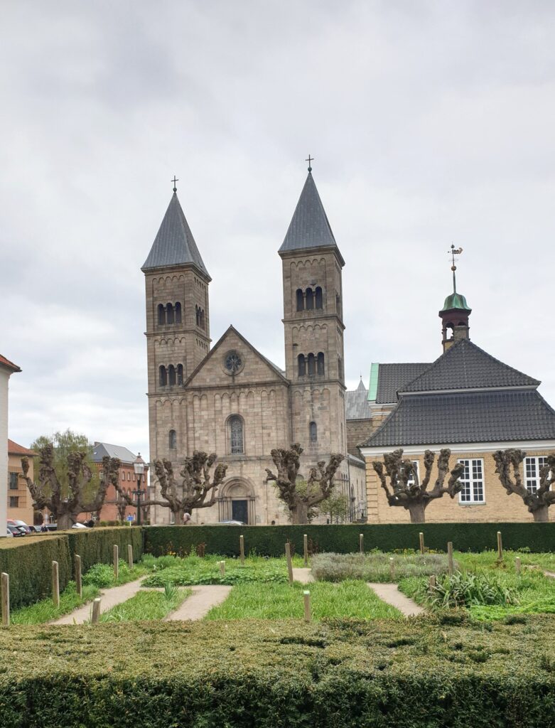 Fra Latinerhaven har Blicherstatuens et ret flot kig over til Domkirken